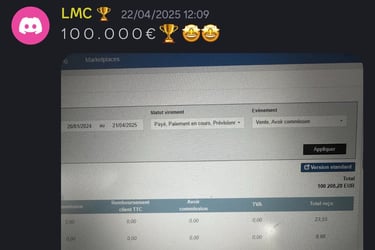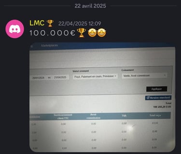 Guillaume a dépassé les 100 000€ de chiffre d'affaires générés grâce à Marketplace Mastery en moins de 20 mois.
